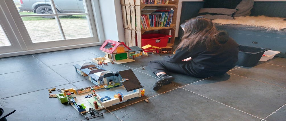 Het buitenerf biedt vele mogelijkheden om urenlang plezier te hebben. Zo hebben we een moestuin, pluktuin vol met prachtig gekleurde bloemen, weides om lekker in te voetballen of te spelen. Dieren die dagelijks verzorgd en gevoerd moeten worden, die het gezellig vinden om geaaid te worden of om lekker mee te knuffelen. Een sloot voor de boerderij om te vissen. Stallen om te onderhouden maar ook om in te spelen. En voldoende buitenspeelgoed zoals skelters, fietsen, trampoline en een schommel om lekker buiten te kunnen spelen. Binnen hebben we een mooie, gerenoveerde ruimte met een groot aanbod aan speelmateriaal. Hier hebben we voldoende ruimte om samen te kunnen spelen, te leren maar ook om je even terug te trekken en te ontspannen.